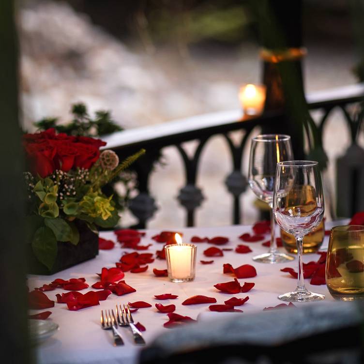 Celebrate love with en intimate five course dinner by the river. A magical evening of gastronomy, roses, and candlelight.